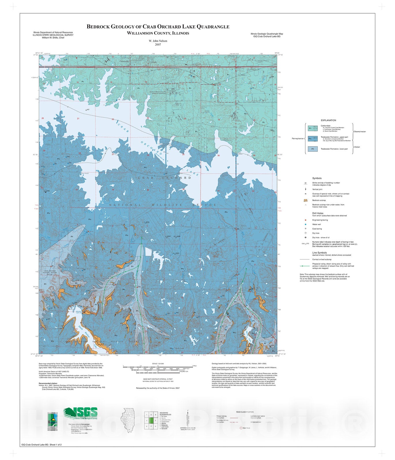 • .Map : Bedrock Geology of Crab Orchard Lake Quadrangle, 2007 Cartography Wall Art :