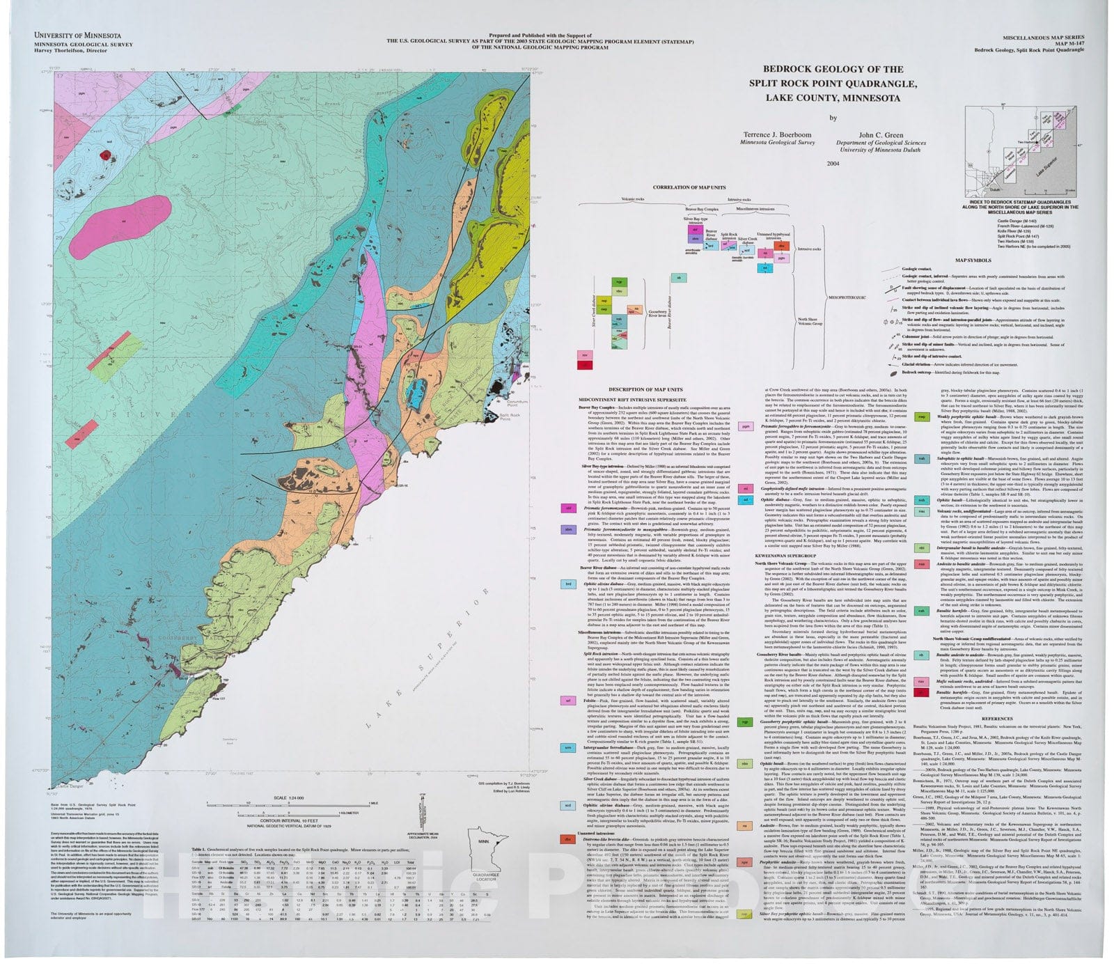 Map : Bedrock geology of the Split Rock Point quadrangle, Lake County, Minnesota, 2004 Cartography Wall Art :