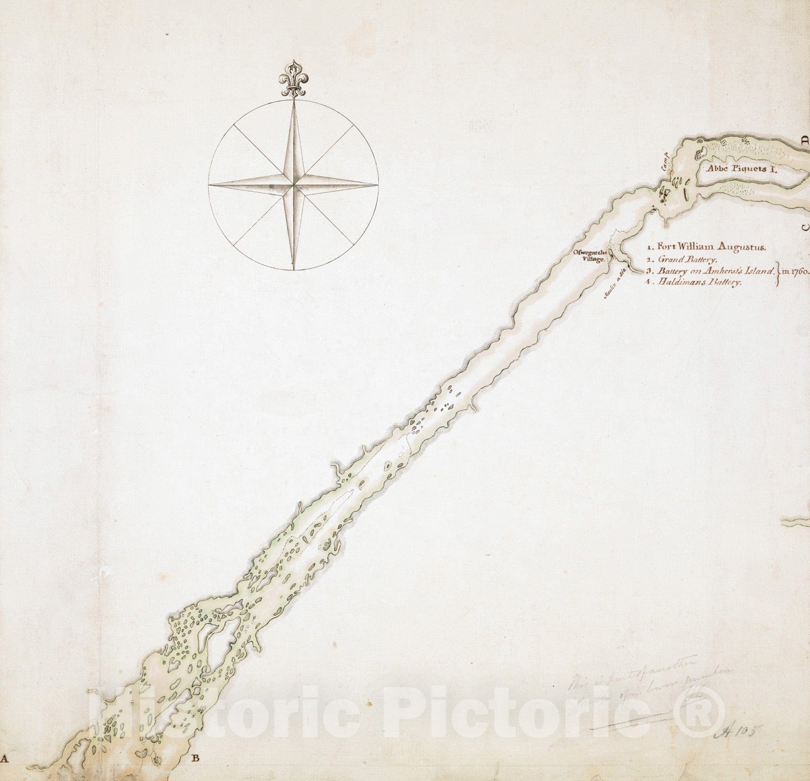 Historical Map, c.1760 Lake Ontario & River S.t Laurence from The Lake to Fort William Augustus in Three Rivers, This was Taken from a French Draft, Vintage Wall Art