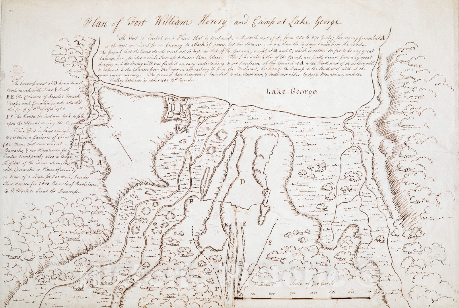 Historical Map, ca. 1755 Plan of Fort William Henry and Camp at Lake George, Vintage Wall Art