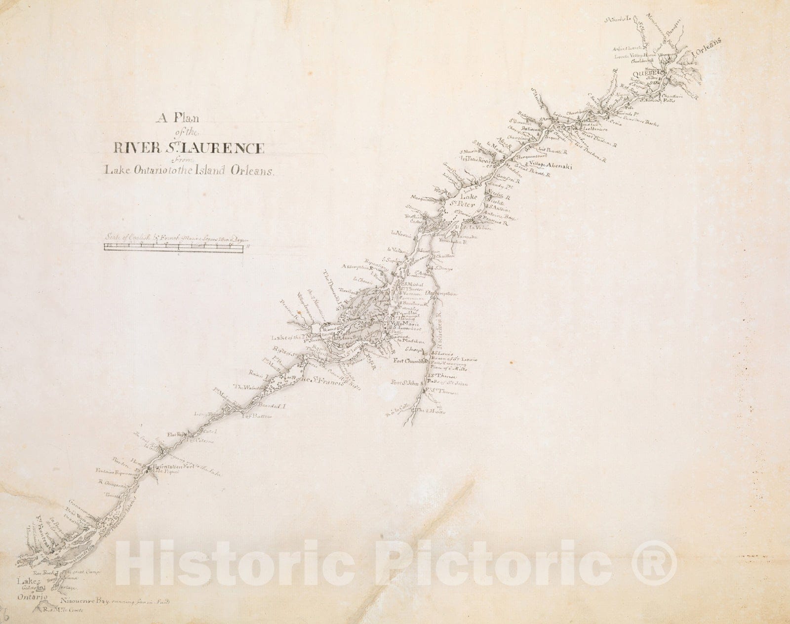 • Historical Map, ca. 1759 A Plan of The River S.T Laurence from Lake Ontario to The Island Orleans, Vintage Wall Art