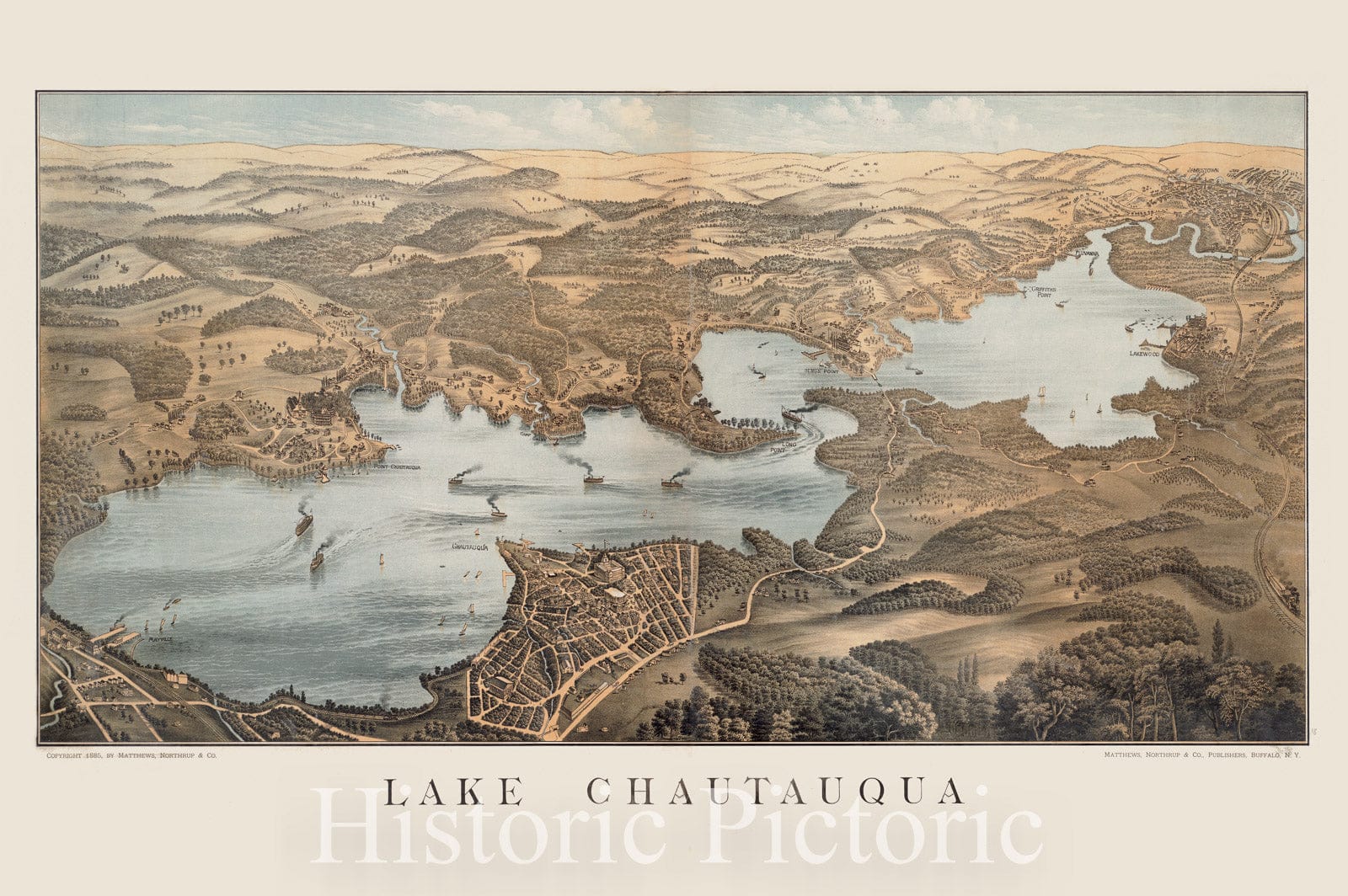 Historical Map, ca. 1885 Lake Chautauqua, Vintage Wall Art