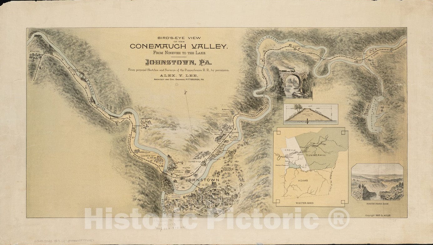 Historical Map, ca. 1889 Bird's-Eye View of The Conemaugh Valley, from Nineveh to The Lake : Johnstown, Pa, Vintage Wall Art