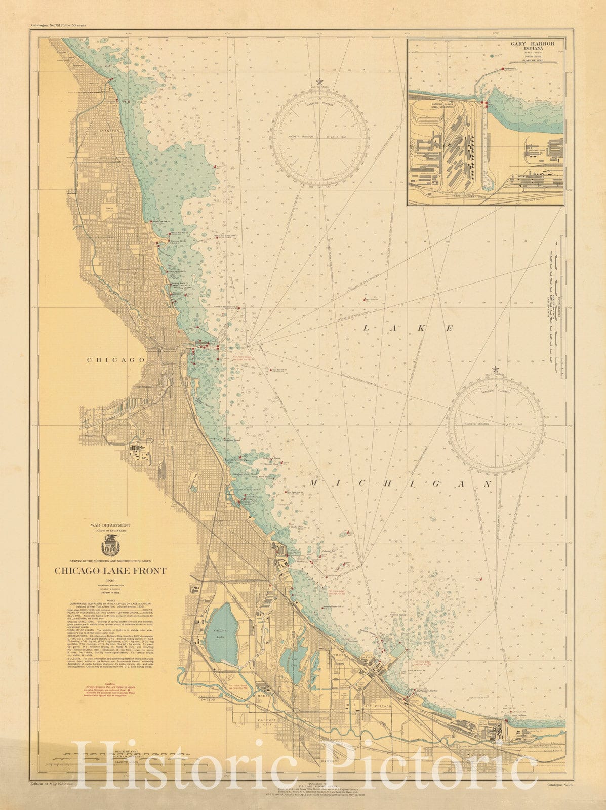Historic Nautical Map - Chicago Lake Front No2 From Hyde Park Ill To Gary Ind Including Calumet And Indiana Harbors, 1926 NOAA Chart - Illinois Vintage Wall Art