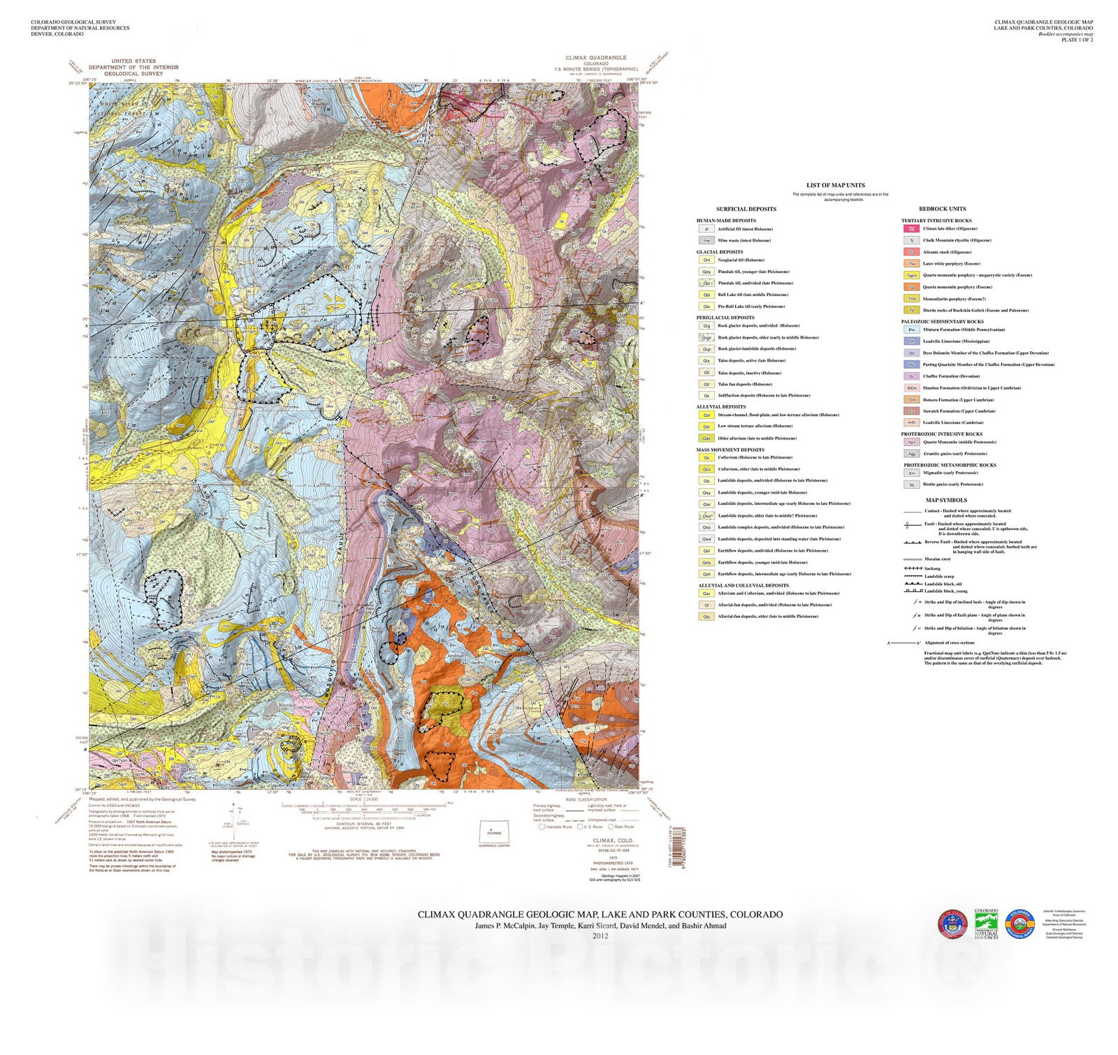 Map : Climax Quadrangle Geologic Map, Lake and Park Counties, Colorado, 2012 Cartography Wall Art :