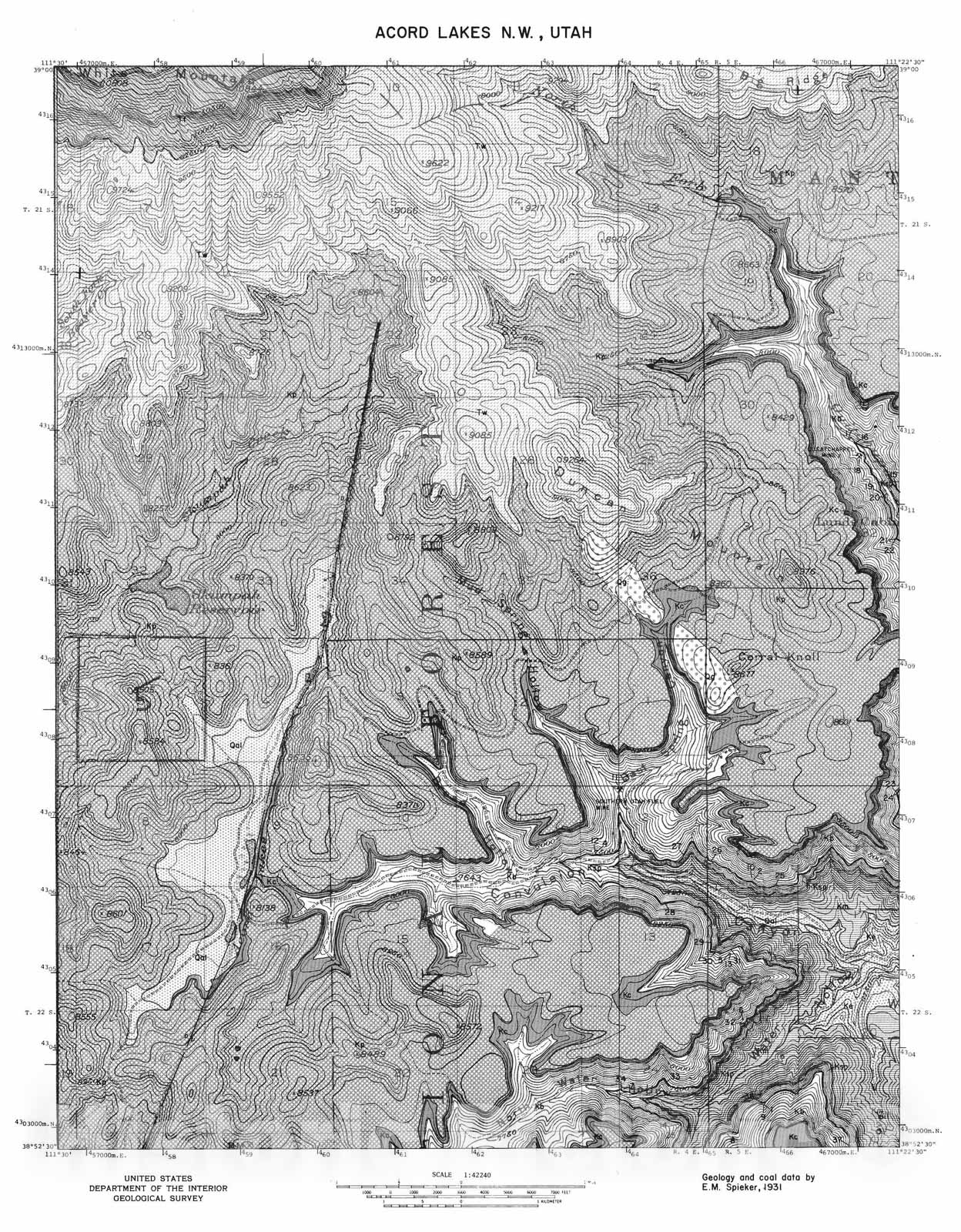 Map : Coal and geology map, Acord Lakes NW [Acord Lakes] quadrangle, 1972 Cartography Wall Art :