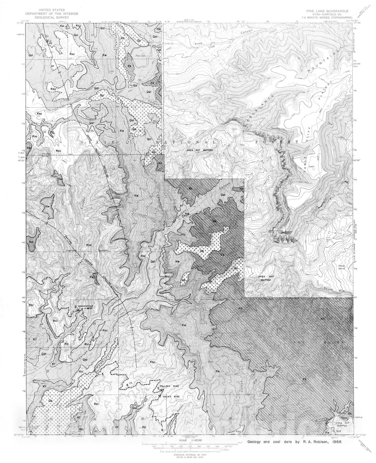 Coal and geology map, Pine Lake quadrangle