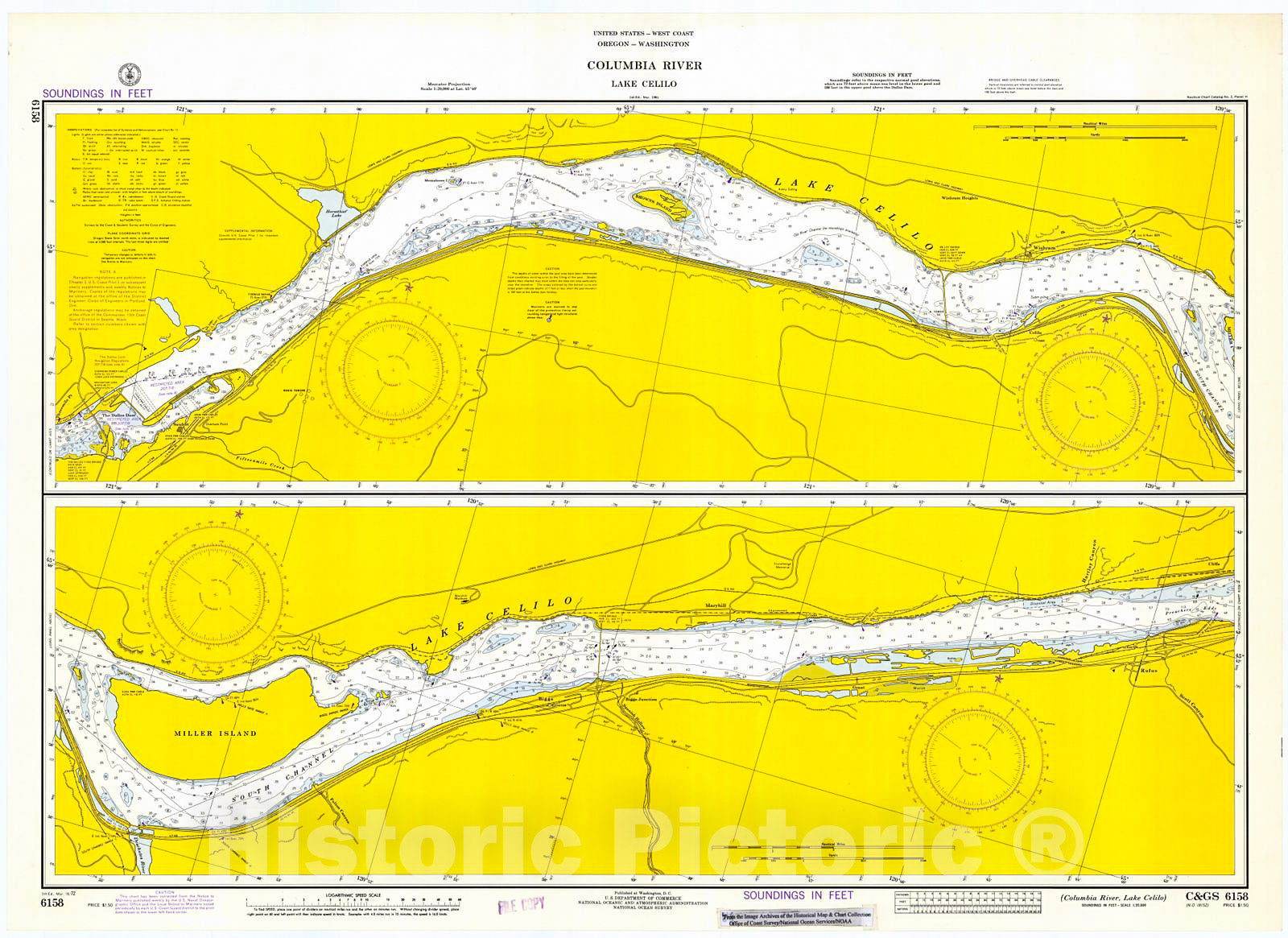 • .Historic Nautical Map - Columbia River - Lake Celilo, 1972 NOAA Chart - Oregon (OR) - Vintage Wall Art