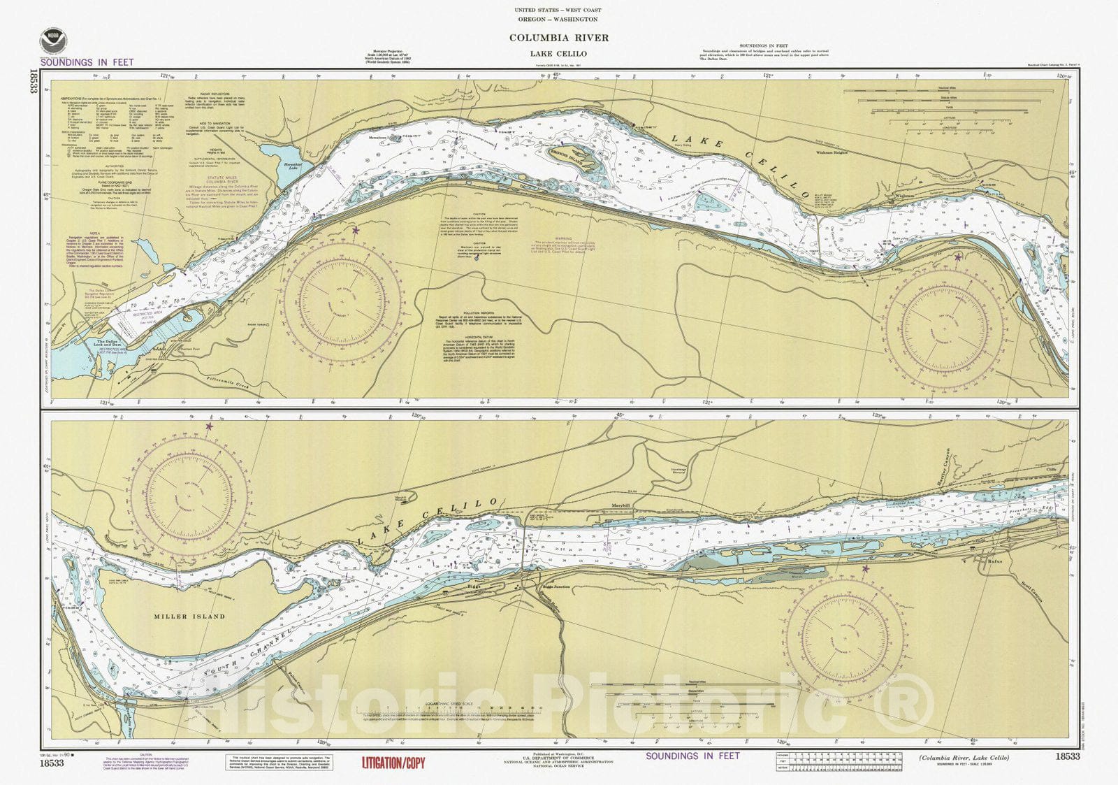 Historic Nautical Map - Columbia River Lake Celilo, OR, WA, 1990 NOAA Chart - Vintage Wall Art