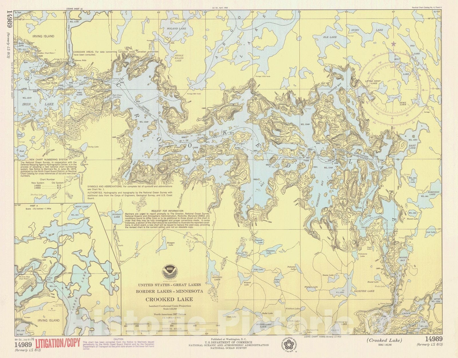 Historic Nautical Map - Crooked Lake, MN, 1976 NOAA Chart - Vintage Wall Art