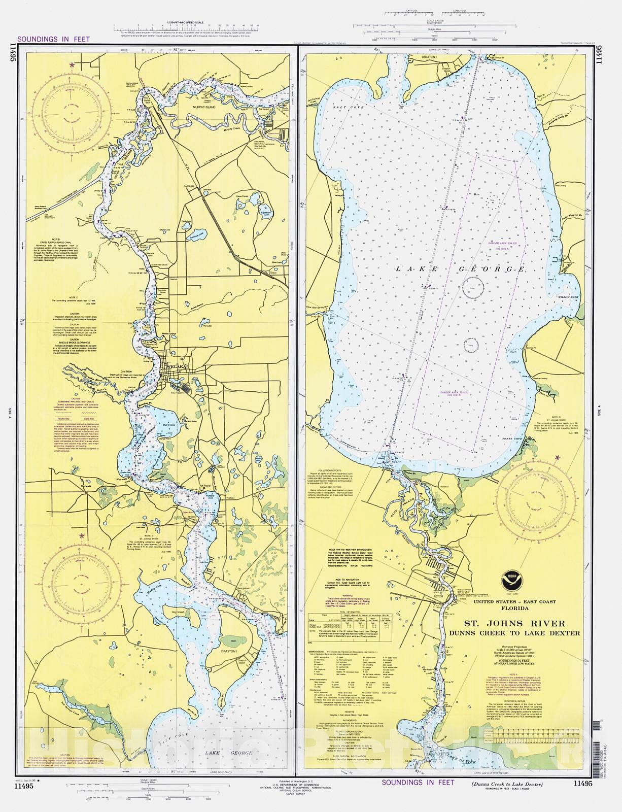 Historic Nautical Map - Dunns Creek To Lake Dexter, 1996 NOAA Chart - Florida (FL) - Vintage Wall Art