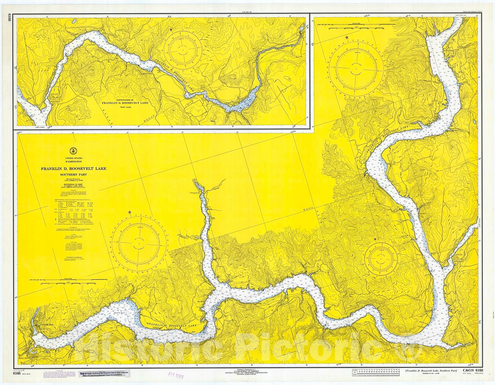 • .Historic Nautical Map - Franklin D. Roosevelt Lake, Southern Part, 1971 NOAA Chart - Washington (WA) - Vintage Wall Art