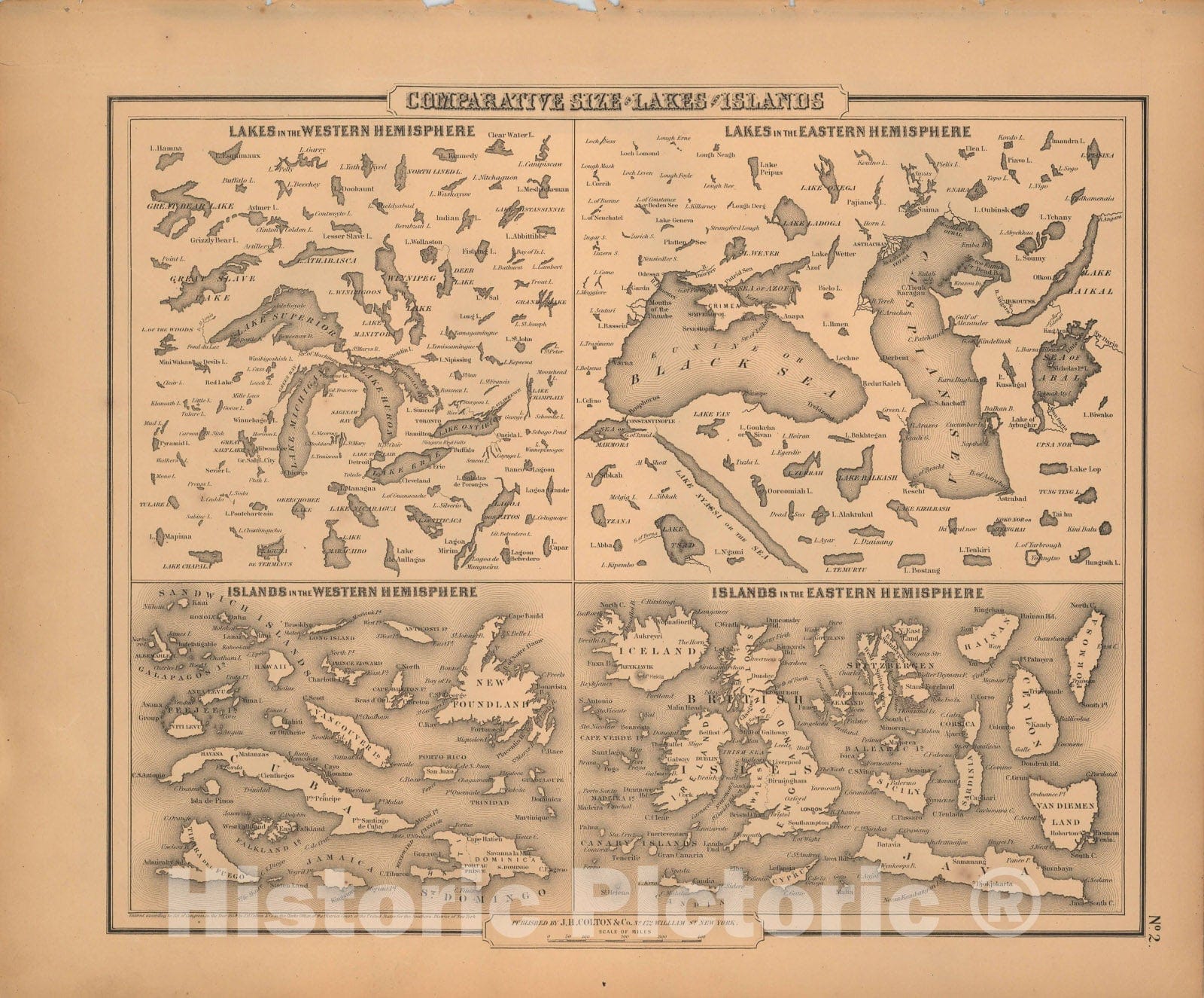 • Historic Map : General Atlas (Of The World), 1857 Lakes & Islands , Vintage Wall Art