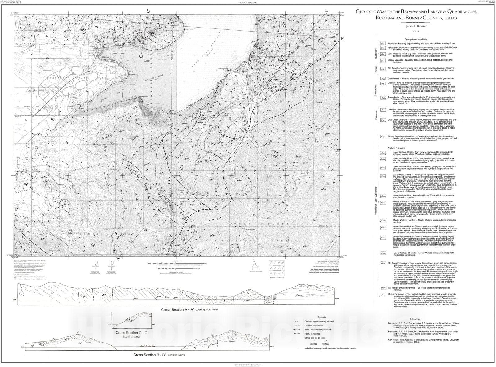 Map : Geologic Map of the Bayview and Lakeview Quadrangles, Kootenai and Bonner Counties, Idaho, 2012 Cartography Wall Art :