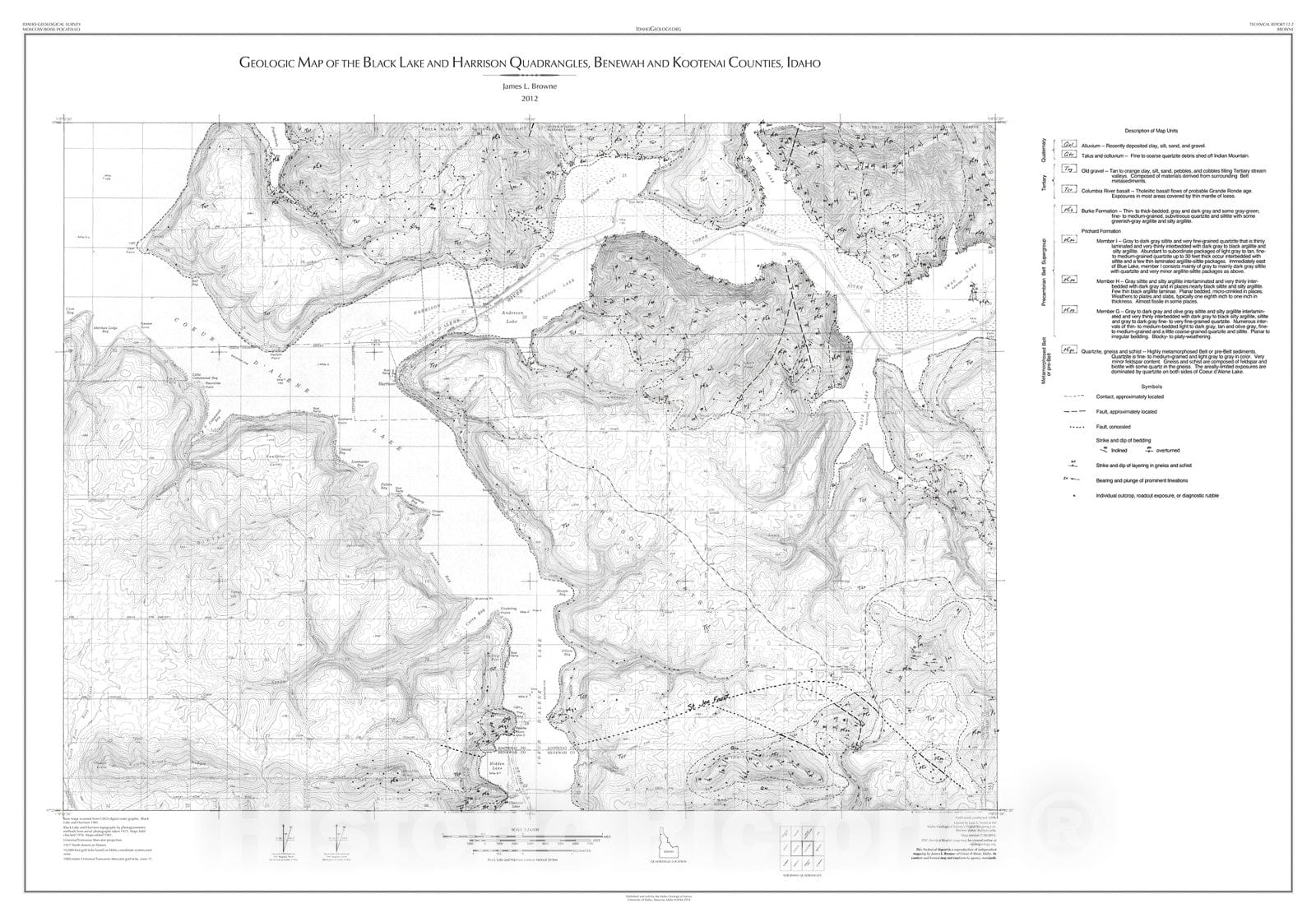 Map : Geologic Map of the Black Lake and Harrison Quadrangles, Benewah and Kootenai Counties, Idaho, 2012 Cartography Wall Art :