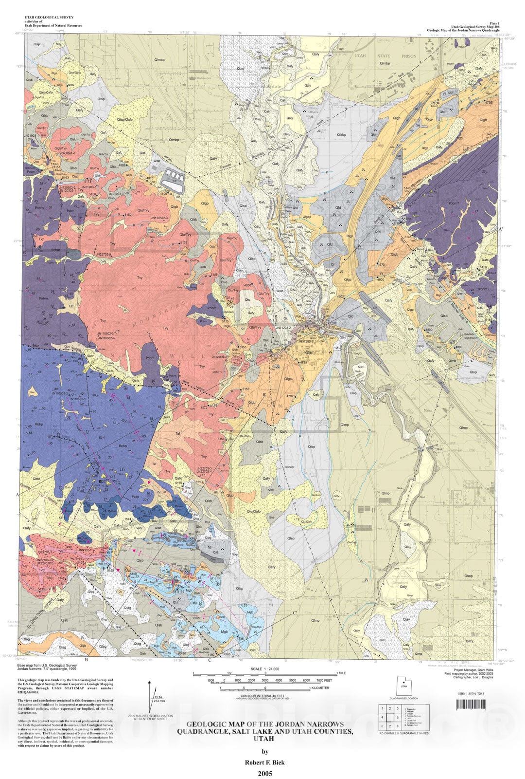 Map : Geologic map of the Jordan Narrows quadrangle, Salt Lake and Utah Counties, Utah, 2005 Cartography Wall Art :