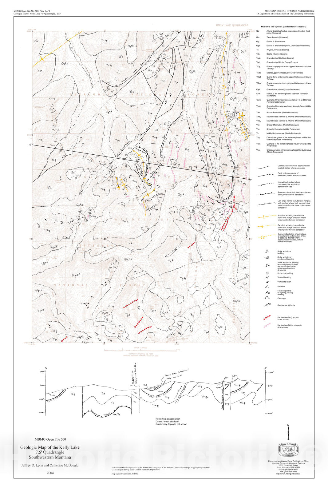 Map : Geologic map of the Kelly Lake 7.5' quadrangle, western Montana, 2004 Cartography Wall Art :
