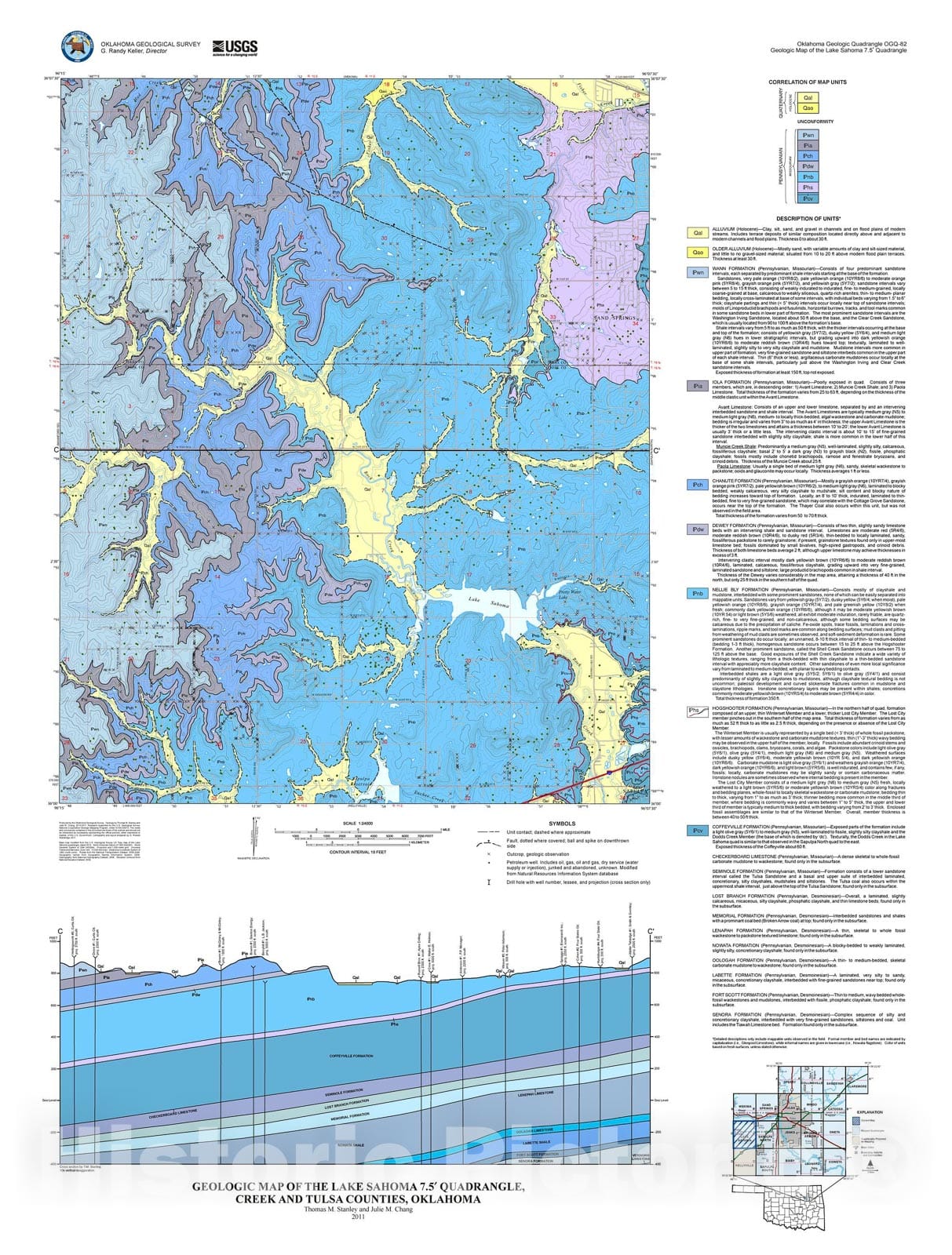 Map : Geologic Map of the Lake Sahoma 7.5' Quadrangle, Creek and Tulsa Counties, Oklahoma, 2011 Cartography Wall Art :