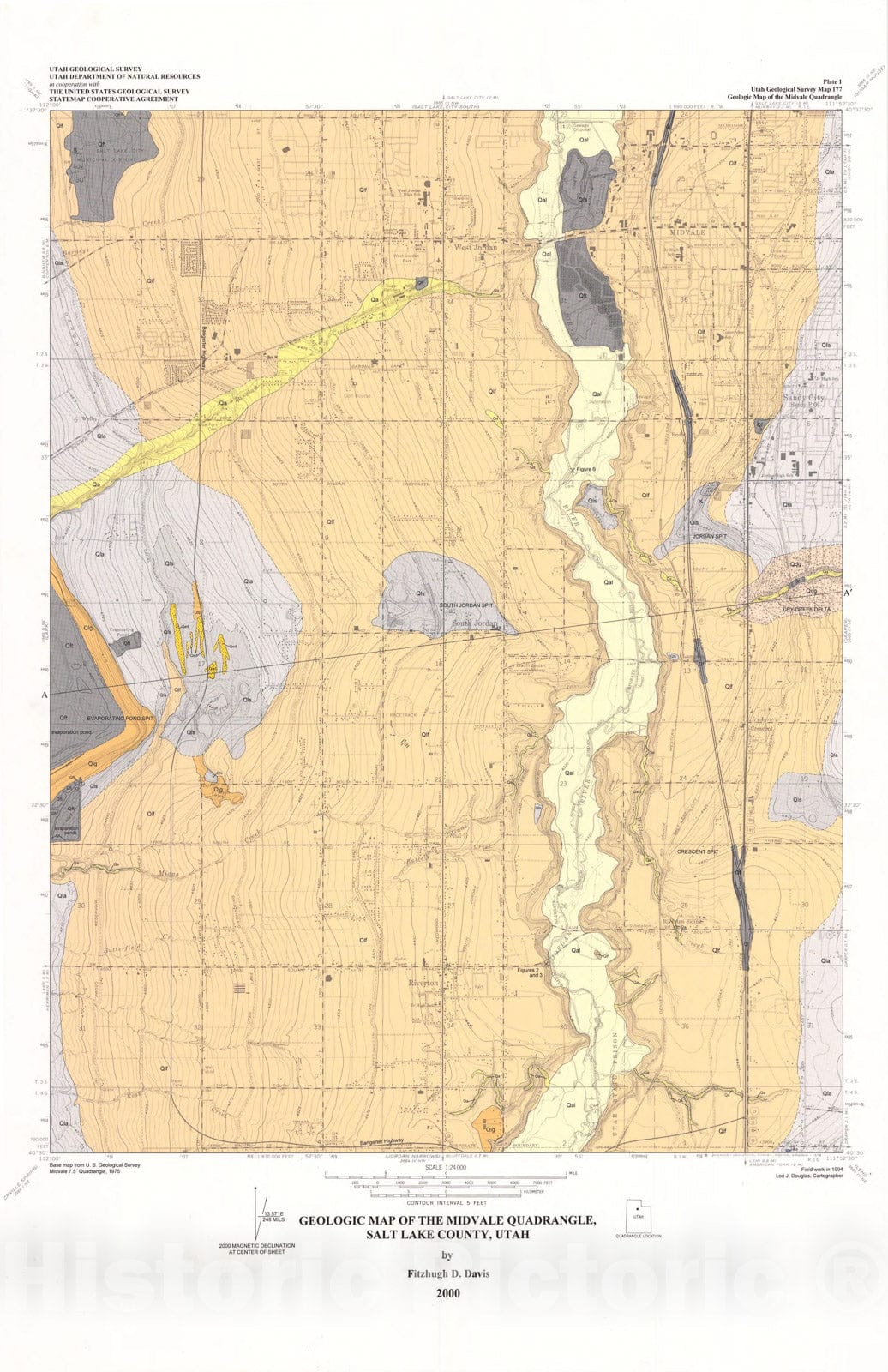 Map : Geologic map of the Midvale quadrangle, Salt Lake County, Utah, 2000 Cartography Wall Art :