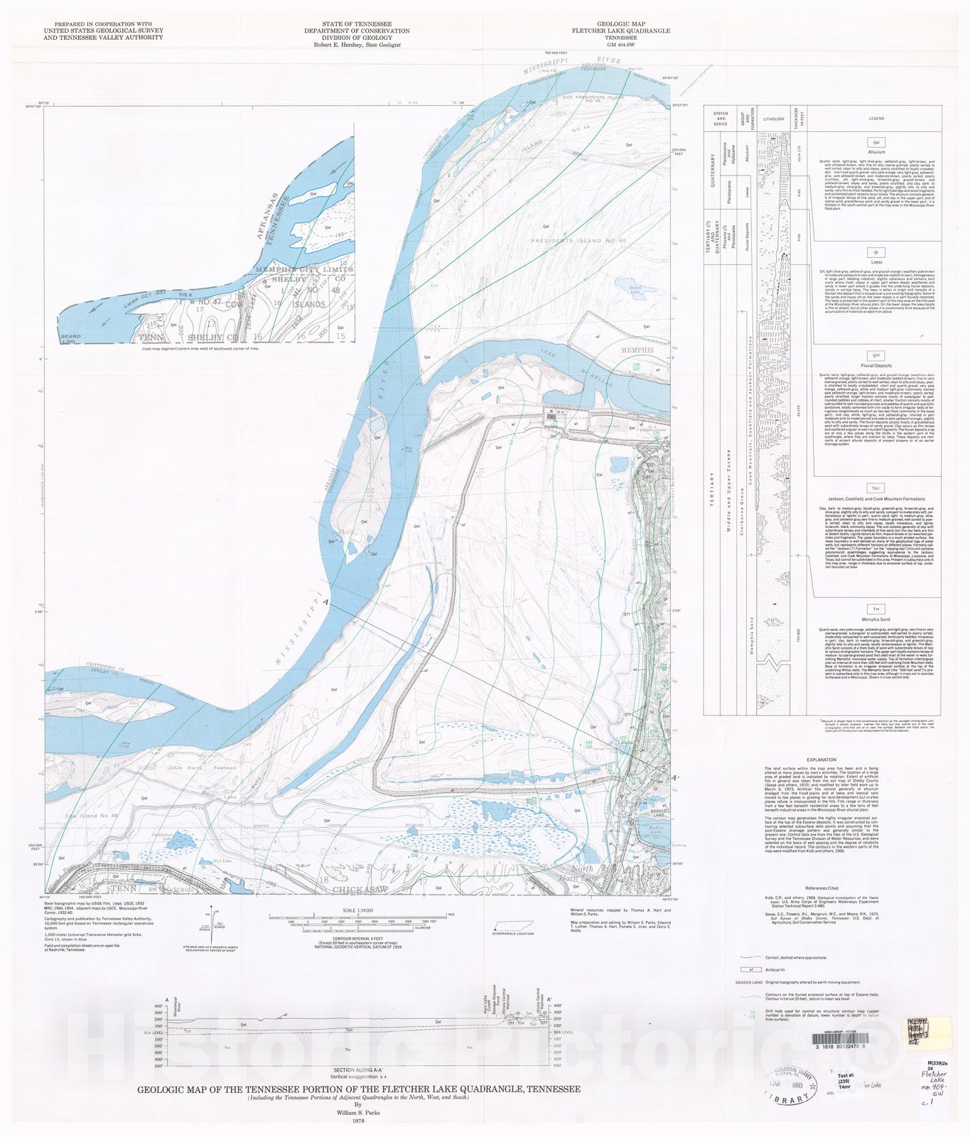 Map : Geologic Map and Mineral Resources Summary of the Fletcher Lake Quadrangle (Including the Tennessee part of Lake Cormorant, 1979 Cartography Wall Art :