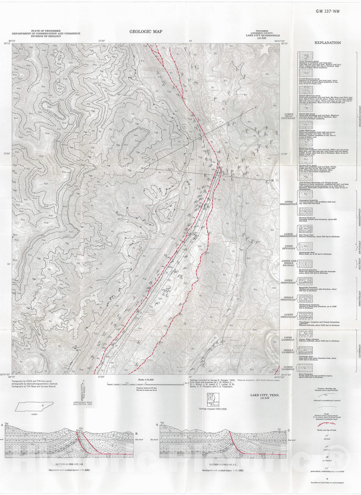 Map : Geologic Map and Mineral Resources Summary of the Lake City Quadrangle, 1960 Cartography Wall Art :