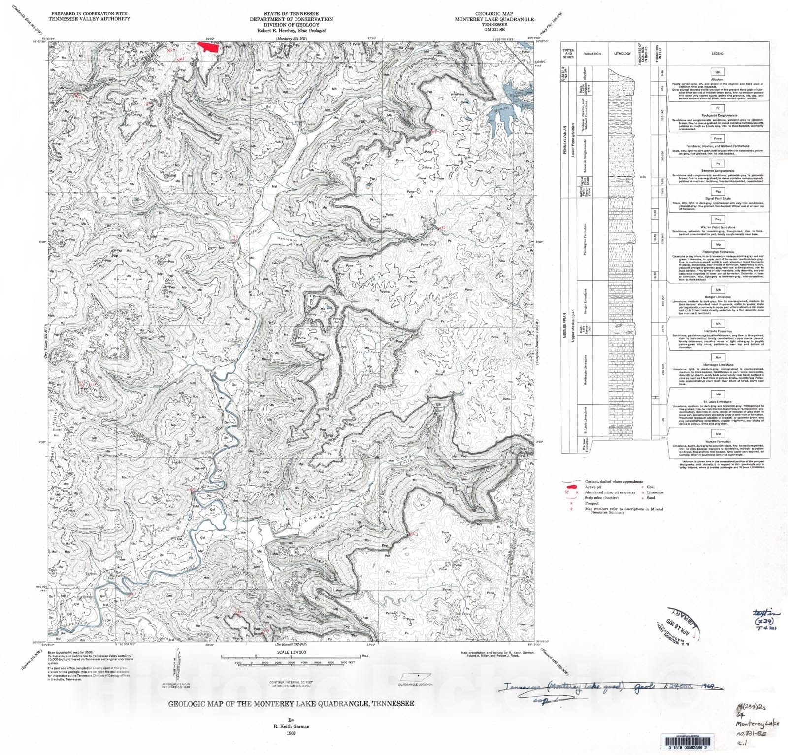 Map : Geologic Map and Mineral Resources Summary of the Monterey Lake Quadrangle, 1969 Cartography Wall Art :