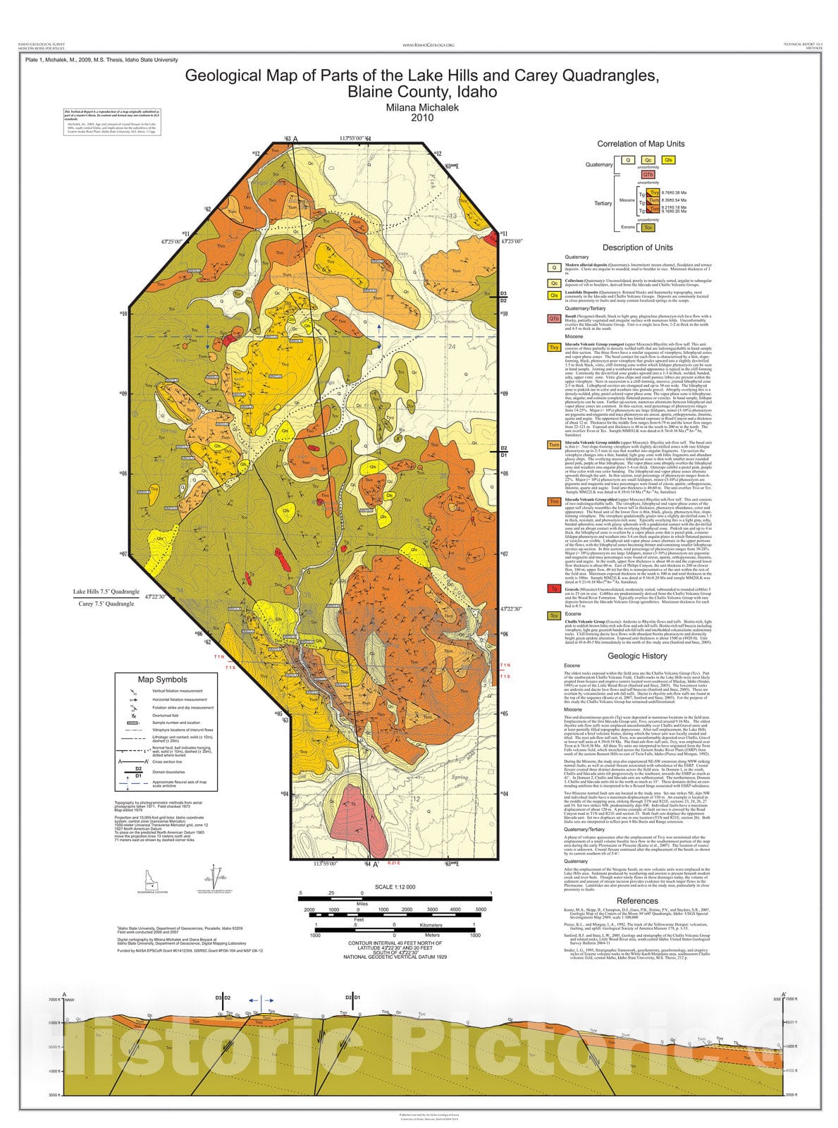Map : Geologic Map of Parts of the Lake Hills and Carey Quadrangles, Blaine County, Idaho, 2010 Cartography Wall Art :