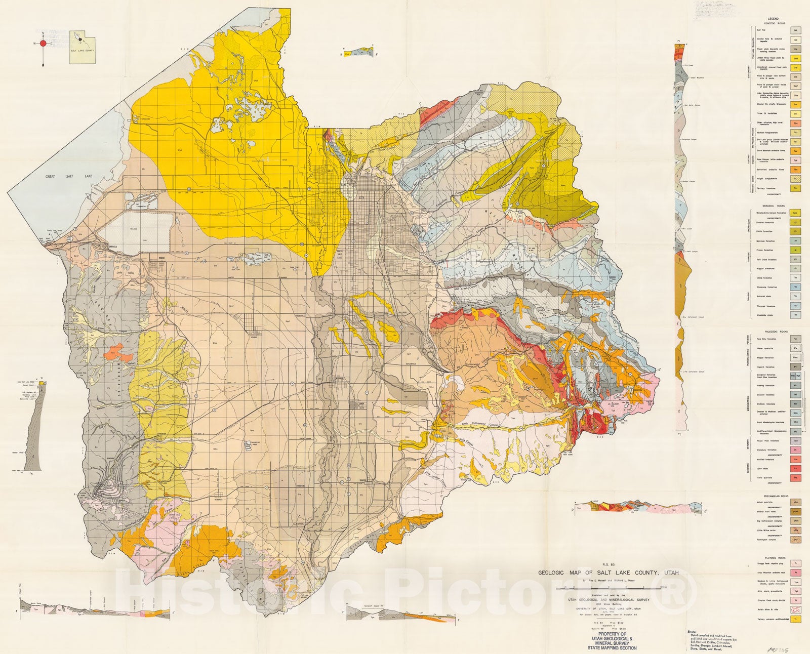 Map : Geologic map of Salt Lake County, Utah, 1964 Cartography Wall Art :