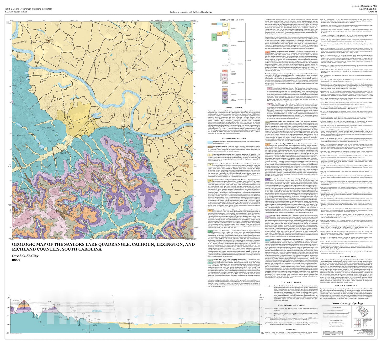 Map : Geologic map of the Saylors Lake quadrangle, Calhoun, Lexington, and Richland Counties, South Carolina, 2007 Cartography Wall Art :