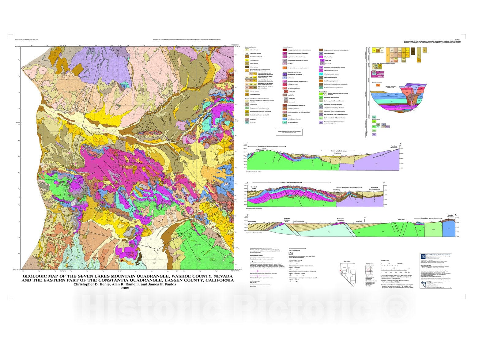 Map : Geologic map of the Seven Lakes Mountain quadrangle, Washoe County, Nevada, and the eastern part of the Constantia quadrangle, Lassen County, California, 2009 Cartography Wall Art :