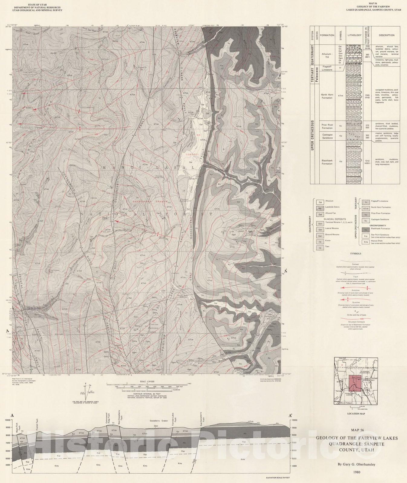 Map : Geology of the Fairview Lakes quadrangle: Sanpete County, Utah, 1980 Cartography Wall Art :