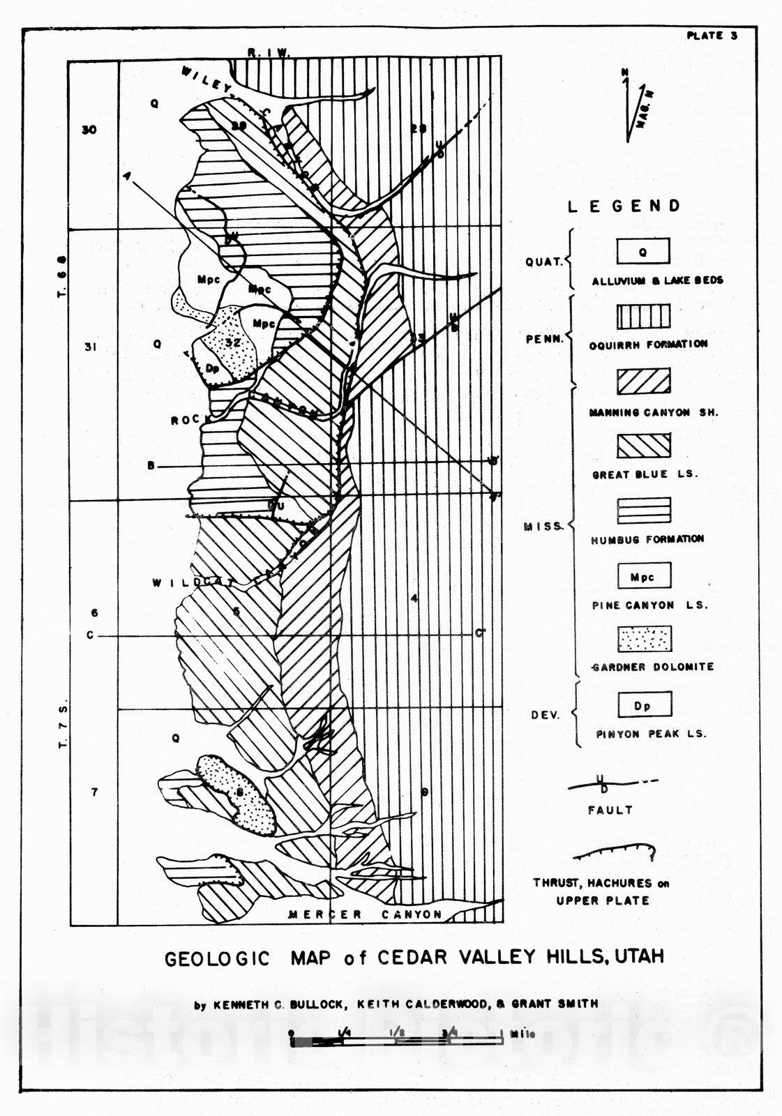 Map : Geology of Lake Mountain, Utah, 1951 Cartography Wall Art :