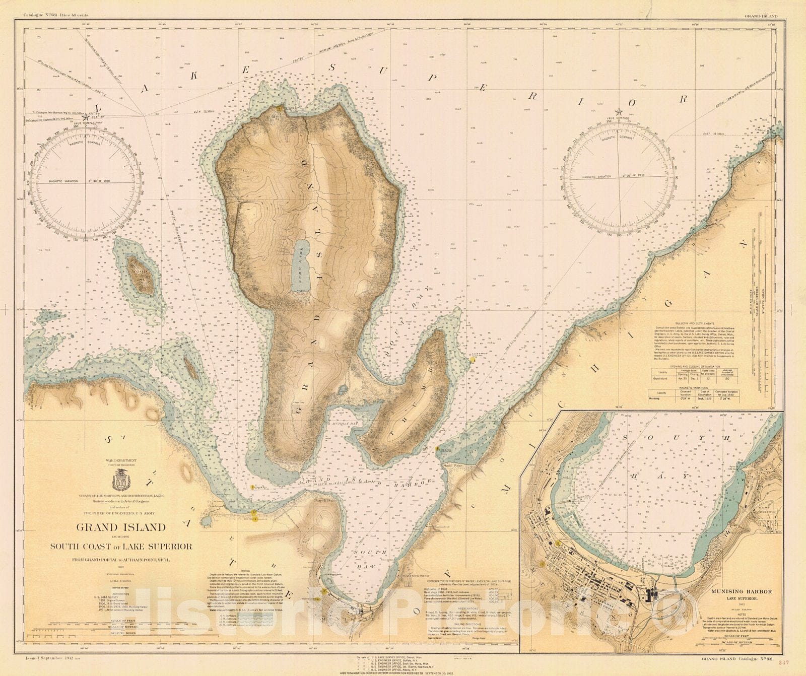 Historic Nautical Map - Grand Island South Coast Of Lake Superior, 1932 NOAA Chart - Vintage Wall Art