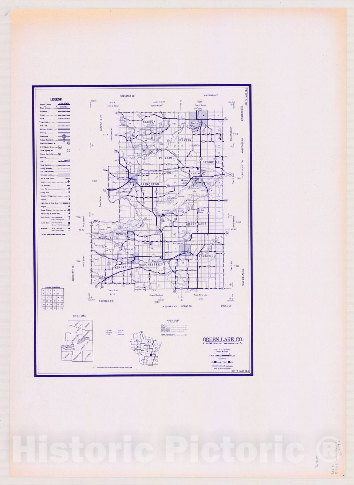 Map : Green Lake County, Wisconsin 1984 1, [Wisconsin county transportation maps] , Antique Vintage Reproduction