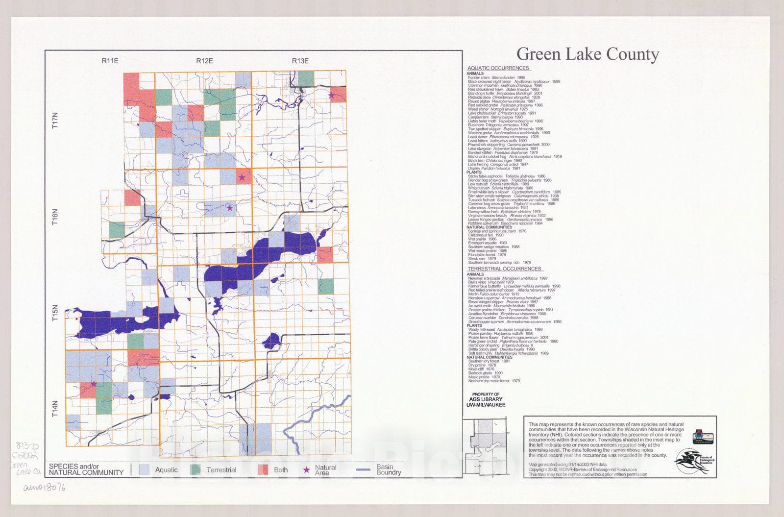 Map : Green Lake County, Wisconsin 2002, Natural Heritage Inventory Wisconsin , Antique Vintage Reproduction