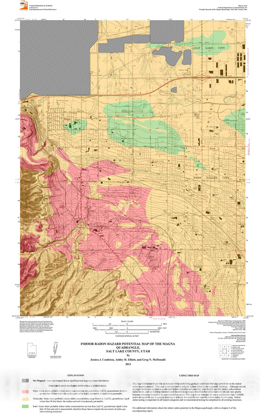 Indoor radon hazard potencial map of the Magna quadrangle, Salt Lake County, Utah