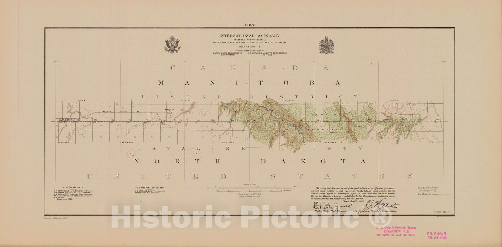 • Historic Nautical Map - International Boundary, From The Gulf Of Georgia To The Northwestern Point Of The Lake To The Woods, Sheet No. 51, ND, 1922 NOAA Topographic - Vintage Poster Wall Art Reprint - 0