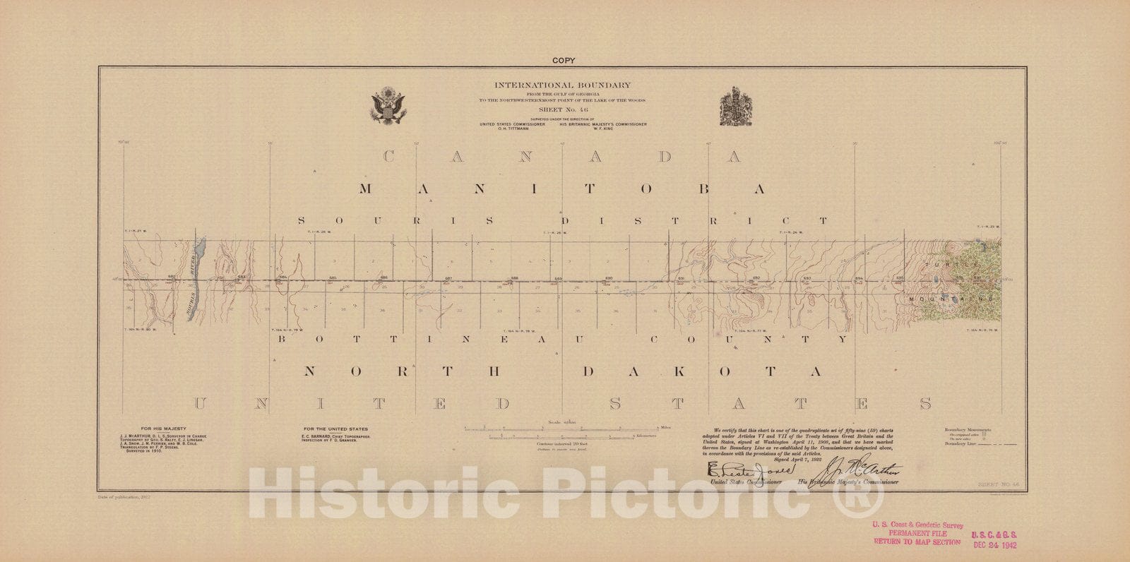 Historic Nautical Map - International Boundary, From The Gulf Of Georgia To The Northwestern Point Of The Lake To The Woods, Sheet No. 46, ND, 1922 NOAA Topographic - Vintage Poster Wall Art Reprint - 0