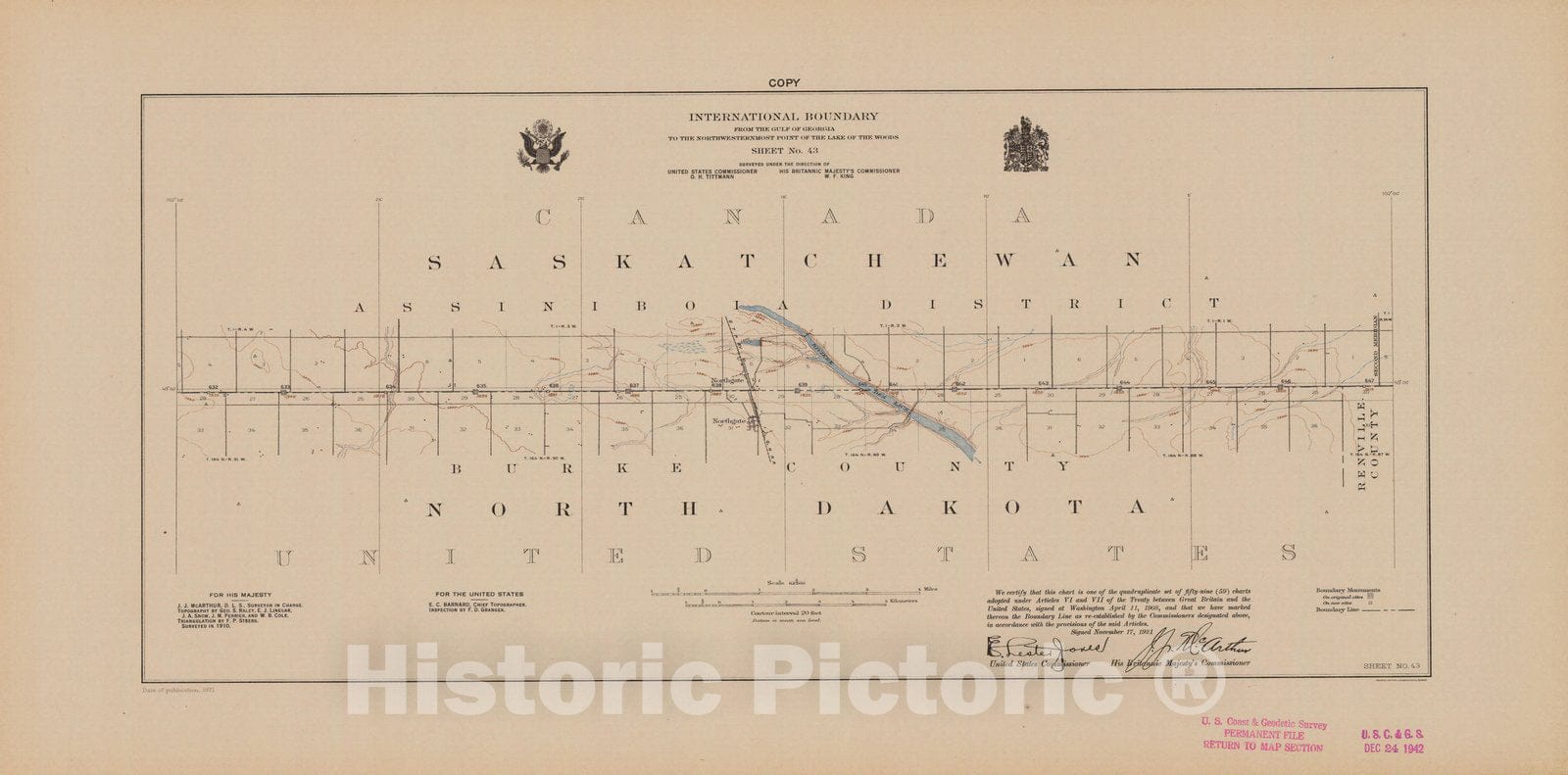 • Historic Nautical Map - International Boundary, From The Gulf Of Georgia To The Northwestern Point Of The Lake To The Woods, Sheet No. 43, ND, 1921 NOAA Topographic - Vintage Poster Wall Art Reprint - 0