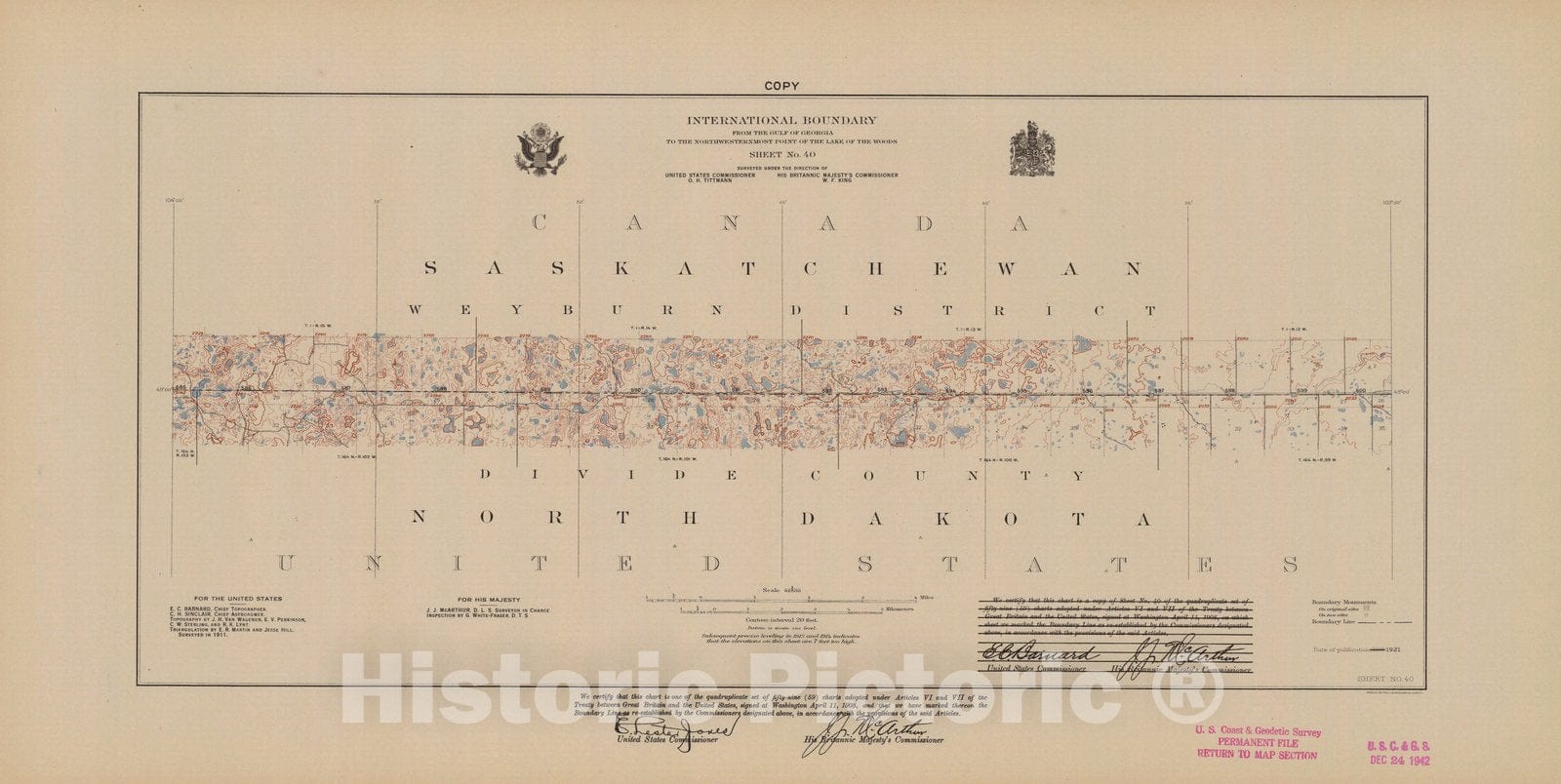 • .Historic Nautical Map - International Boundary, From The Gulf Of Georgia To The Northwestern Point Of The Lake To The Woods, Sheet No. 40, ND, 1921 NOAA Topographic - Vintage Poster Wall Art Reprint - 0