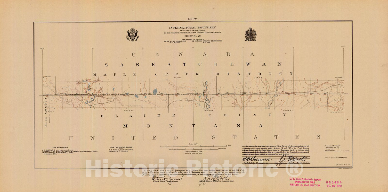 Historic Nautical Map - International Boundary, From The Gulf Of Georgia To The Northwestern Point Of The Lake To The Woods, Sheet No. 29, MT, 1921 NOAA Topographic - Vintage Poster Wall Art Reprint - 0
