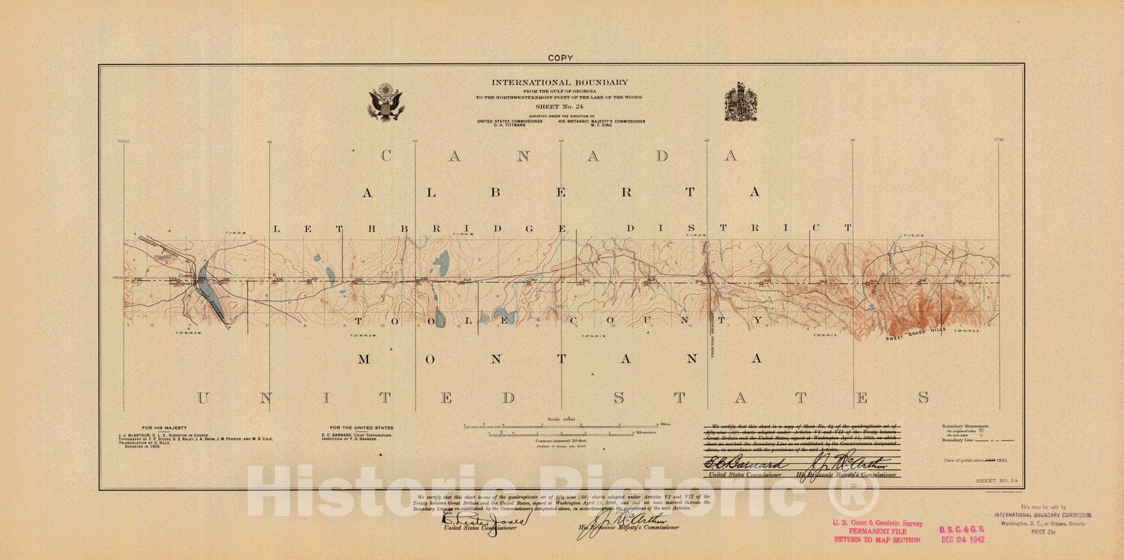 Historic Nautical Map - International Boundary, From The Gulf Of Georgia To The Northwestern Point Of The Lake To The Woods, Sheet No. 24, MT, 1921 NOAA Topographic - Vintage Poster Wall Art Reprint - 0