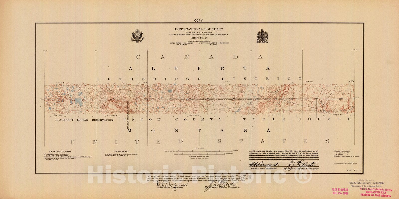 Historic Nautical Map - International Boundary, From The Gulf Of Georgia To The Northwestern Point Of The Lake To The Woods, Sheet No. 23, MT, 1921 NOAA Topographic - Vintage Poster Wall Art Reprint - 0