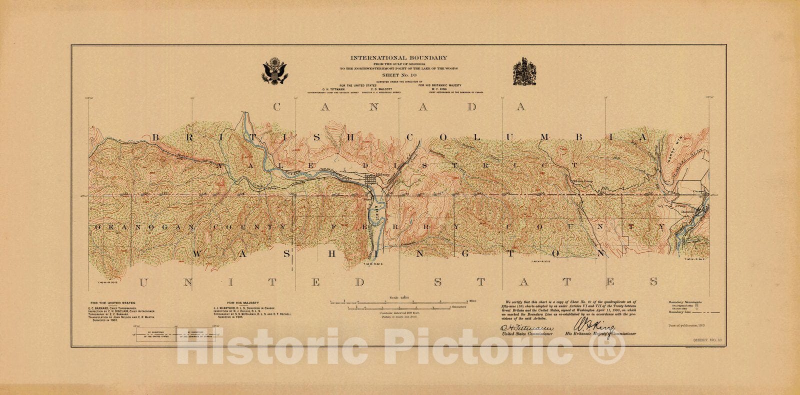 Historic Nautical Map - International Boundary, From The Gulf Of Georgia To The Northwestern Point Of The Lake To The Woods, Sheet No.10, WA, 1913 NOAA Topographic - Poster Wall Art Reproduction - 0