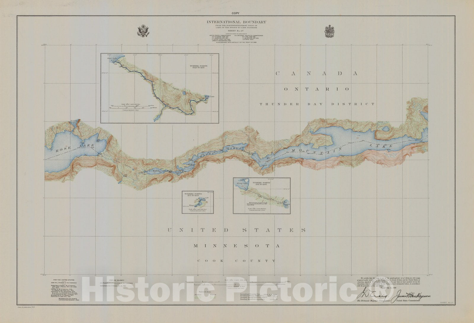 Historic Nautical Map - International Boundary, From The Northwestern Point Of Lake Of The Woods To Lake Superior, Sheet No.27, MN, 1929 NOAA Topographic - Vintage Decor Poster Wall Art Reproduction - 0