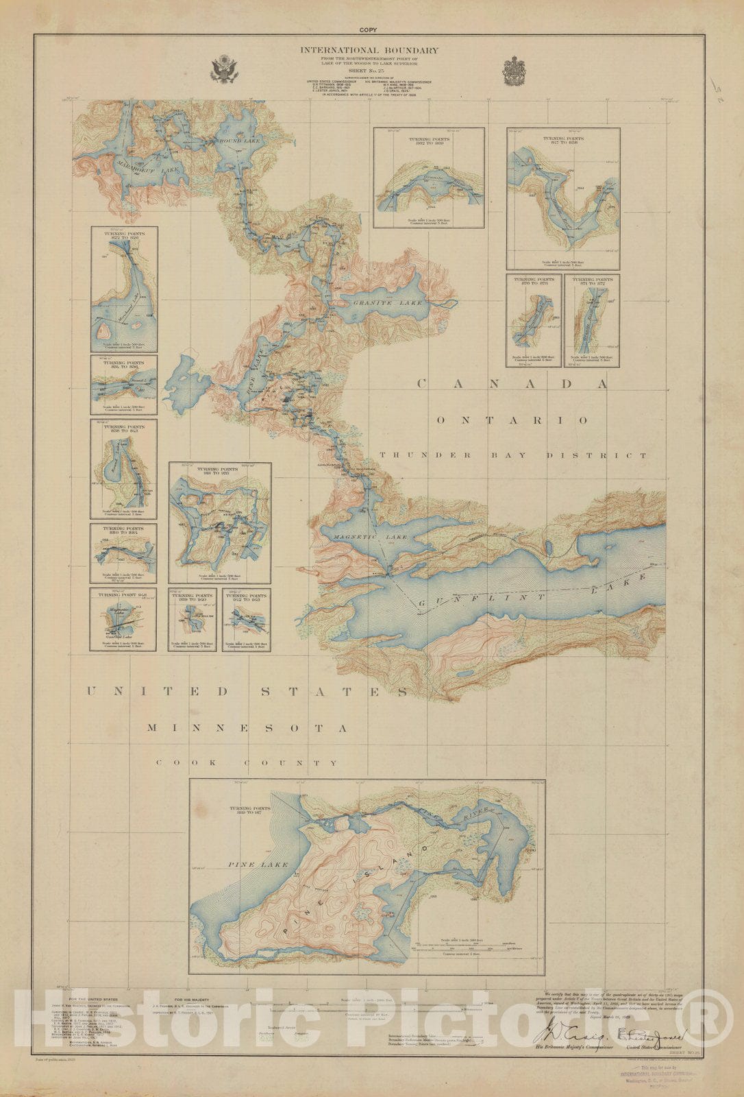 Historic Nautical Map - International Boundary, From The Northwestern Point Of Lake Of The Woods To Lake Superior, Sheet No.25, MN, 1929 NOAA Topographic - Vintage Decor Poster Wall Art Reproduction - 0