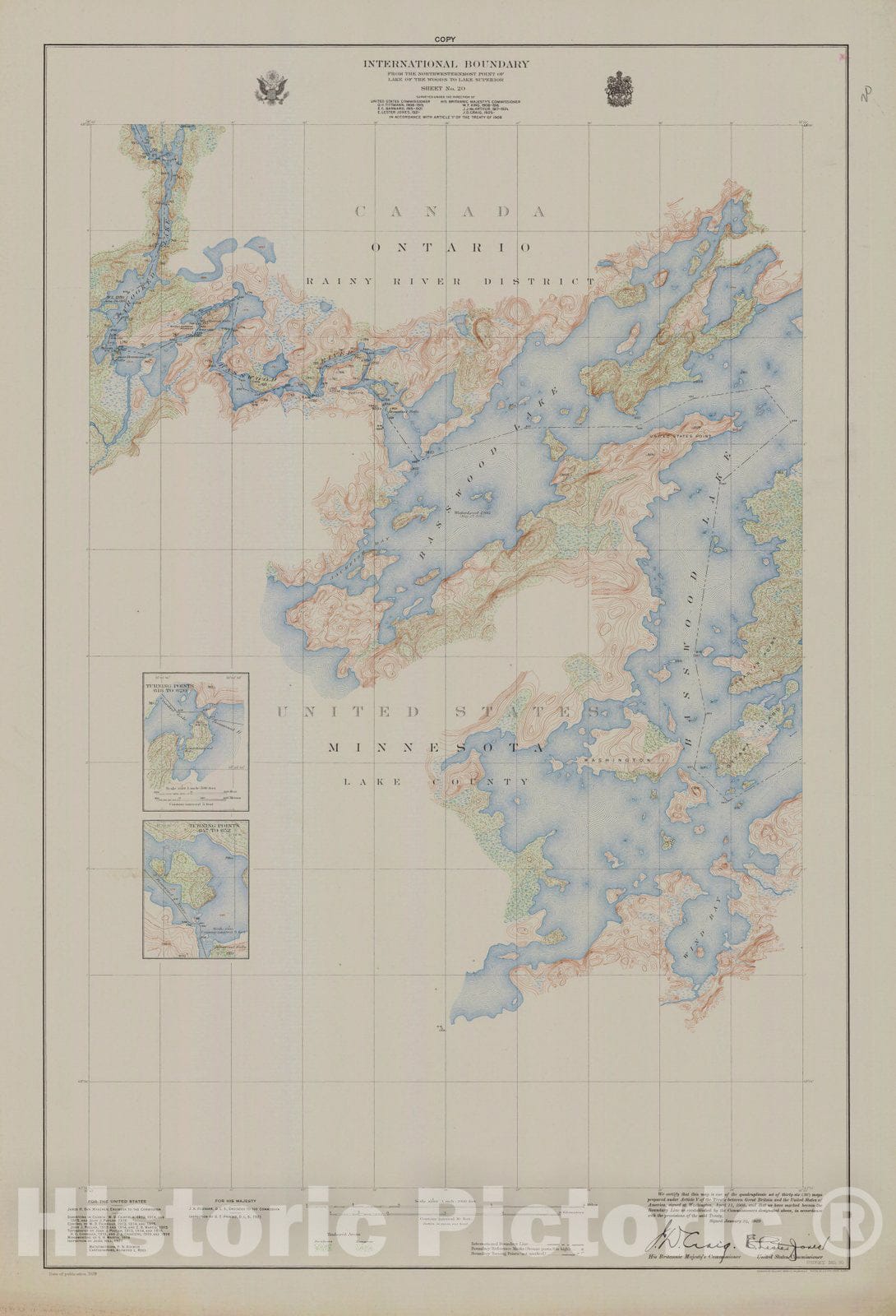 Historic Nautical Map - International Boundary, From The Northwestern Point Of Lake Of The Woods To Lake Superior, Sheet No.20, MN, 1929 NOAA Topographic - Vintage Decor Poster Wall Art Reproduction - 0