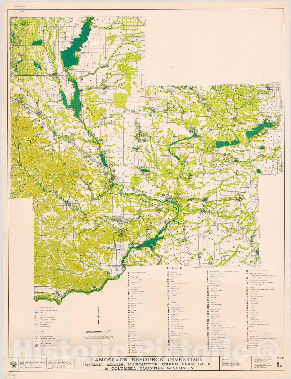 Map : Juneau, Adams, Marquette, Green Lake, Sauk & Columbia counties, Wisconsin 1964 2, Landscape resource inventory ... Wisconsin. , Antique Vintage Reproduction