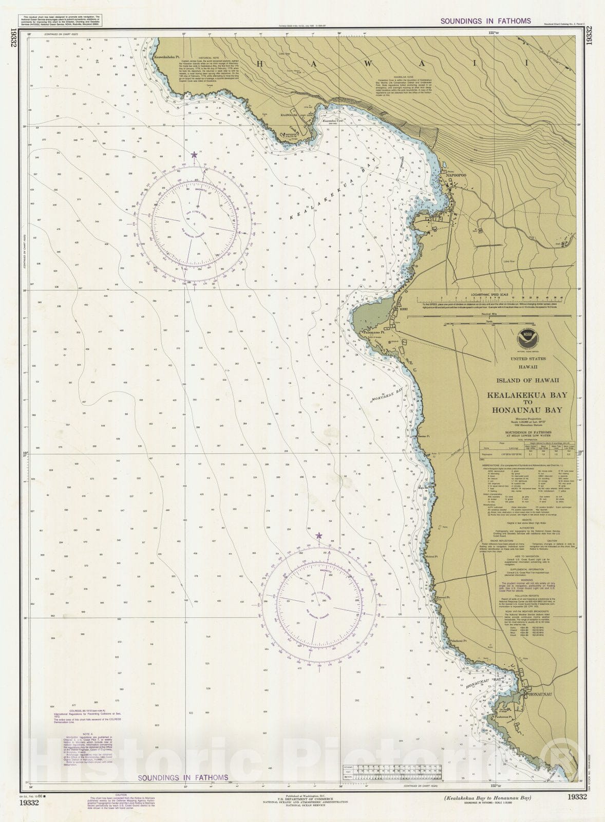 Historic Nautical Map - Kealakekua Bay To Honaunau Bay, HI, 1986 NOAA Chart - Vintage Wall Art