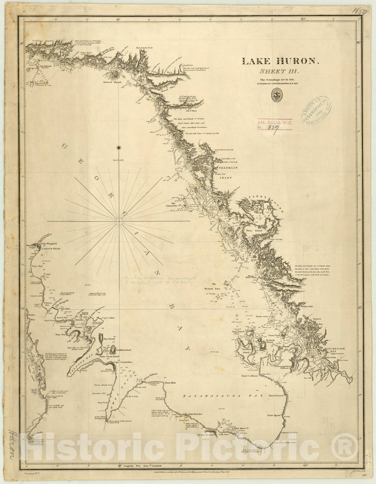 Map : Lake Huron 1828-1848 4, Lake Huron , Antique Vintage Reproduction